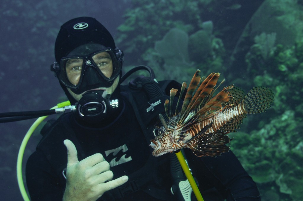 The new thinking about this lionfish invasion goes something like this: IF YOU CAN’T BEAT THEM, EAT THEM! Lionfish are now features of cookbooks, restaurants, and fish derbies. Reef.org, a Florida non-profit marine conservation organization, has published The Lionfish Cookbook by Tricia Ferguson and Lad Akins. Many dive operations in the Caribbean are now training and putting a spear gun in the hands of willing divers to help control the lionfish invasion. I recently discovered that lionfish ceviche is quite delicious!