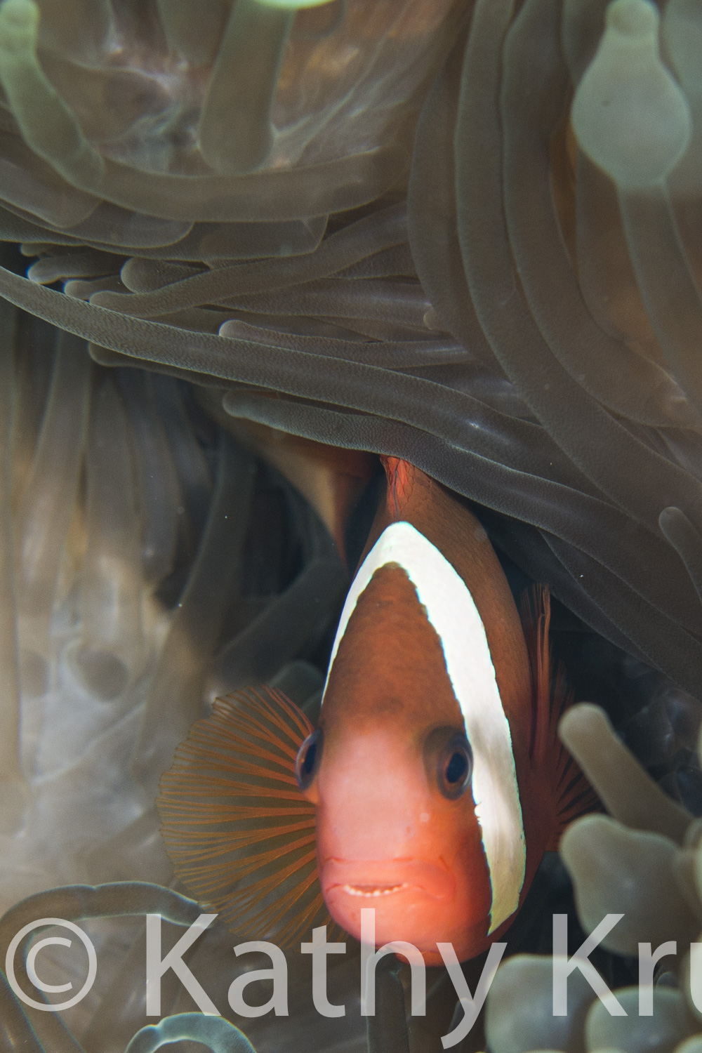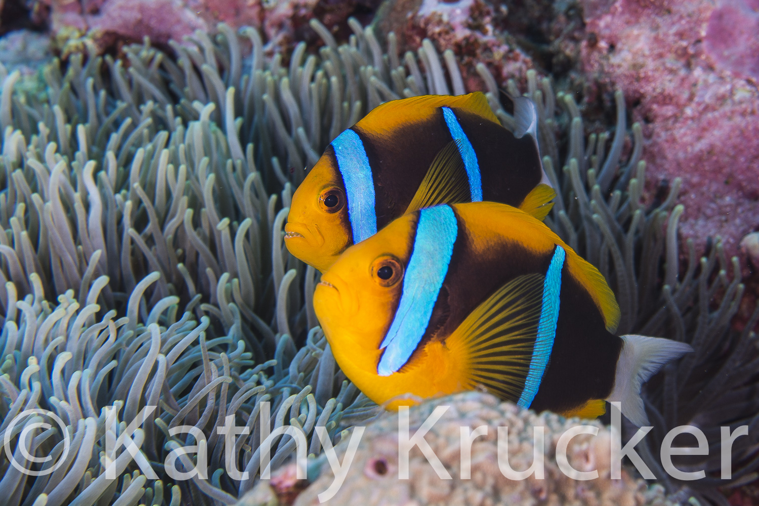 Throughout the many dive sites in Palau, colorful anemones with a variety of vibrant anemonefish dotted the reefs. Many of the anemone fish were guarding recently laid eggs. Anemonefish live with their host anemone in a very close symbiotic relationship and will guard and protect the anemone that they call home.